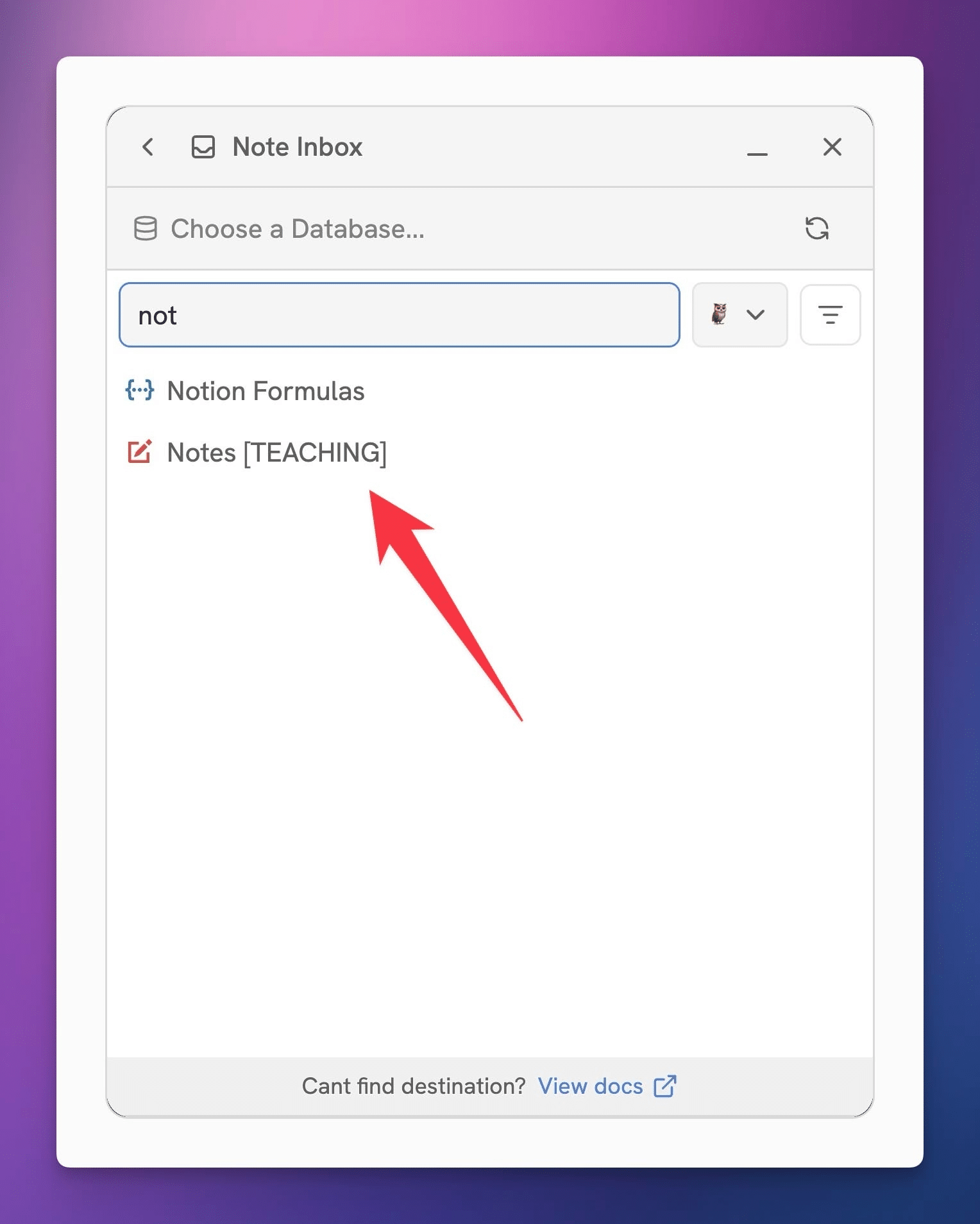 Next, choose a Notion database. This will be your capture destination – when you run a Flow, it’ll create a new page in this database with all your captured information.