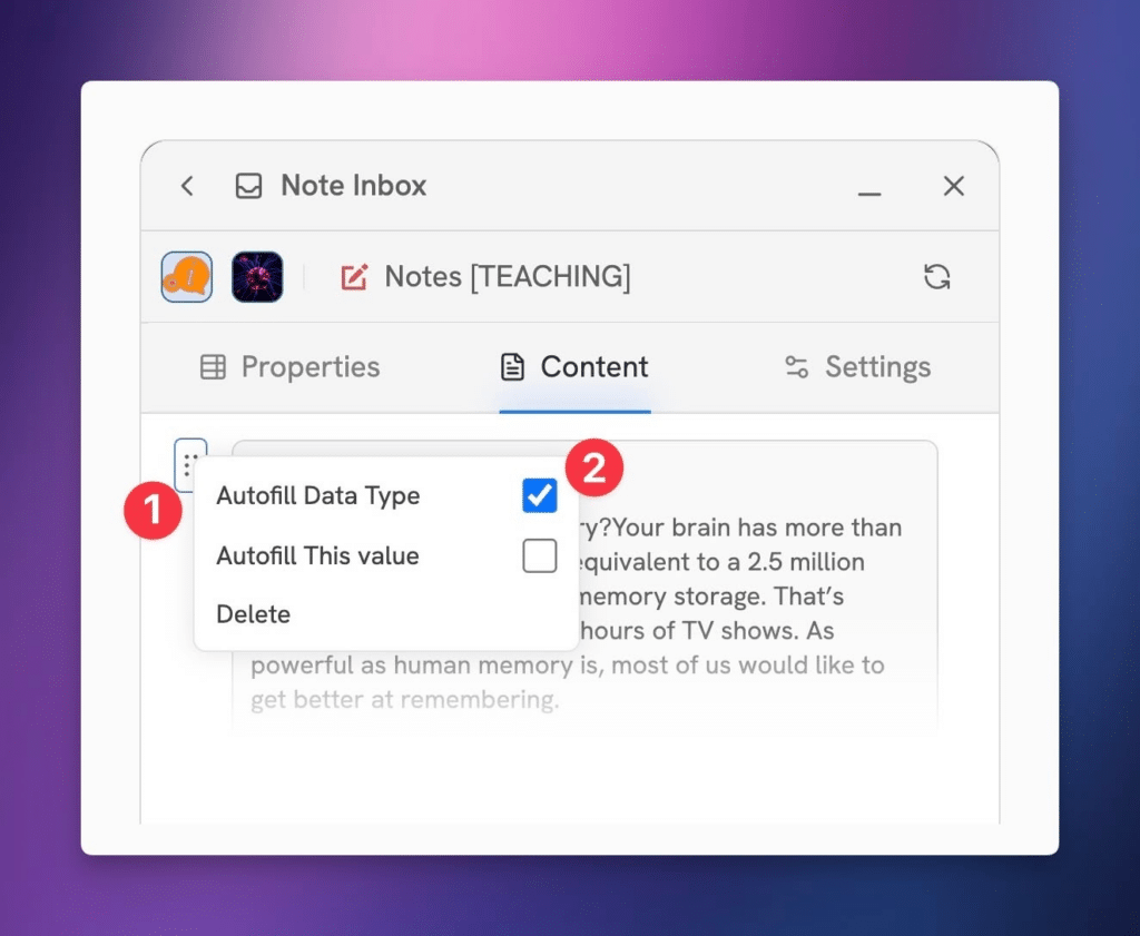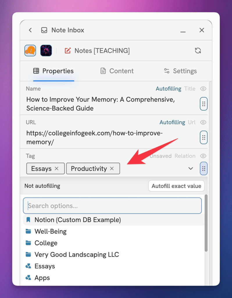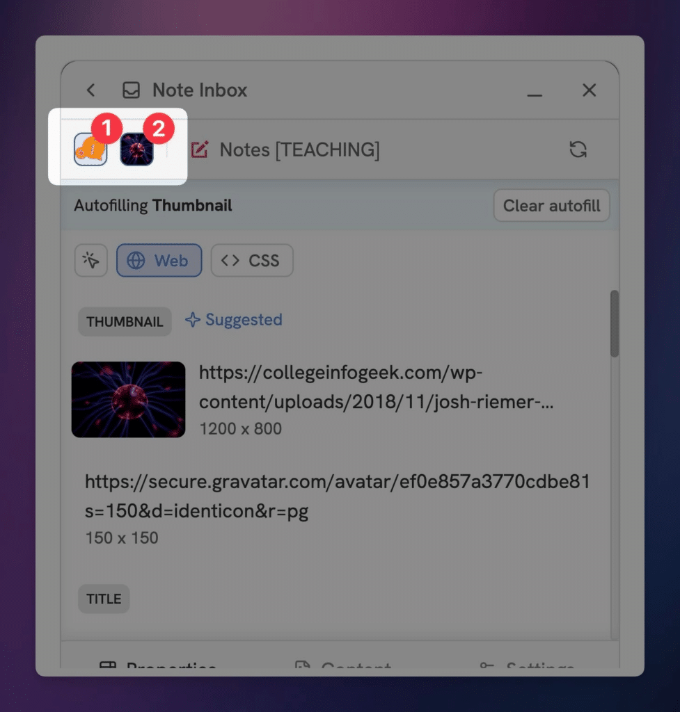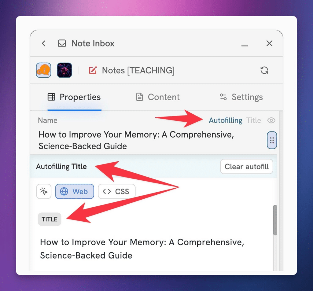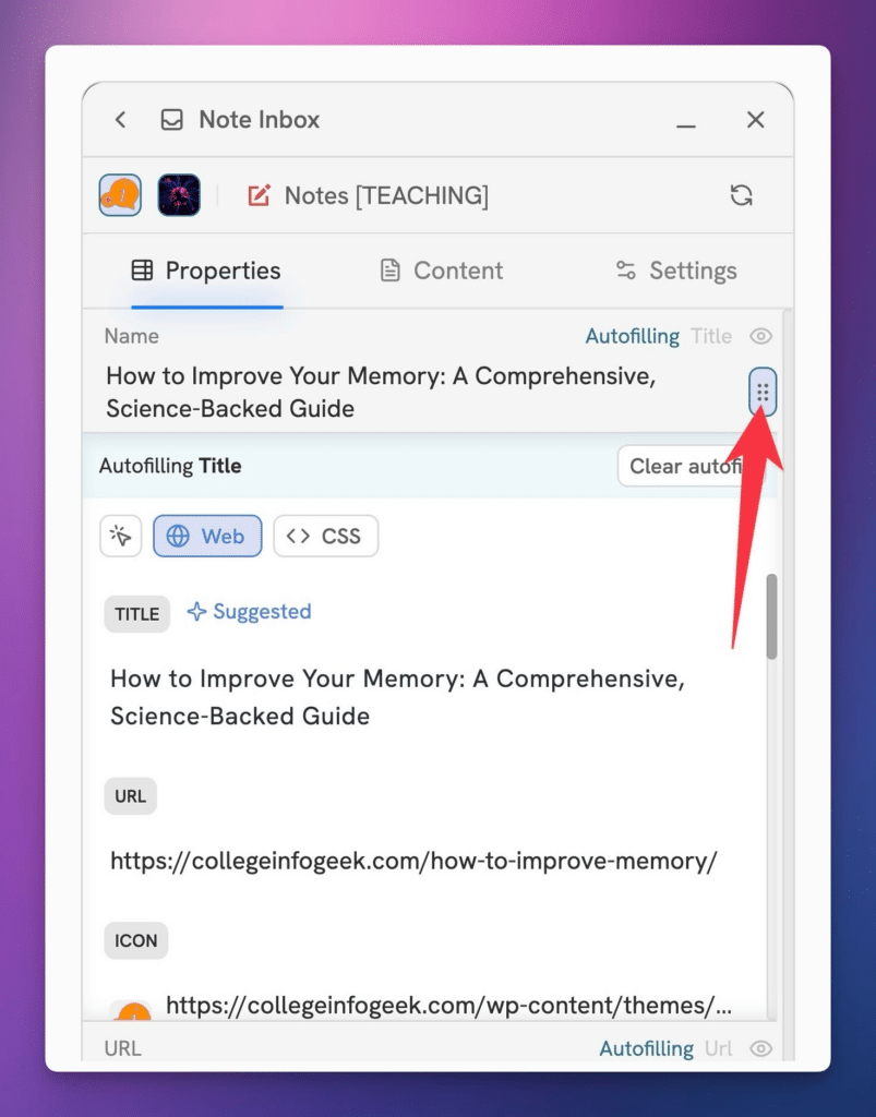 Tip: Head to the Auto-Filling Flows page to learn more about how you can set rule for auto-filling properties with web data! Title and URL properties set themselves to auto-fill by default.