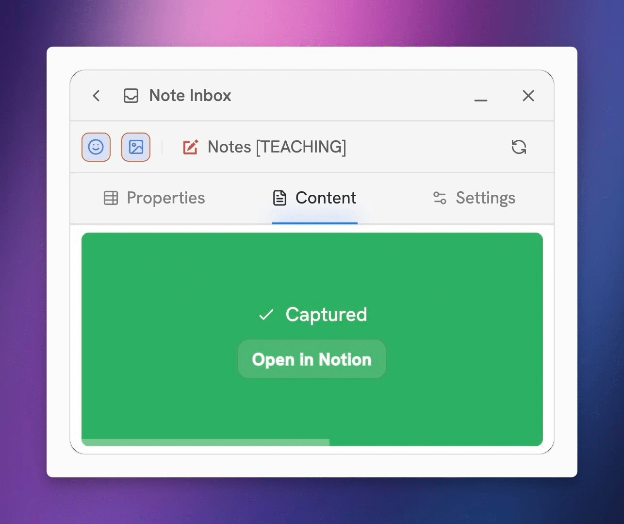 Hit Open in Notion if you’d like to see your shiny, newly-captured page. Otherwise, the dialogue will automatically close after a few seconds.