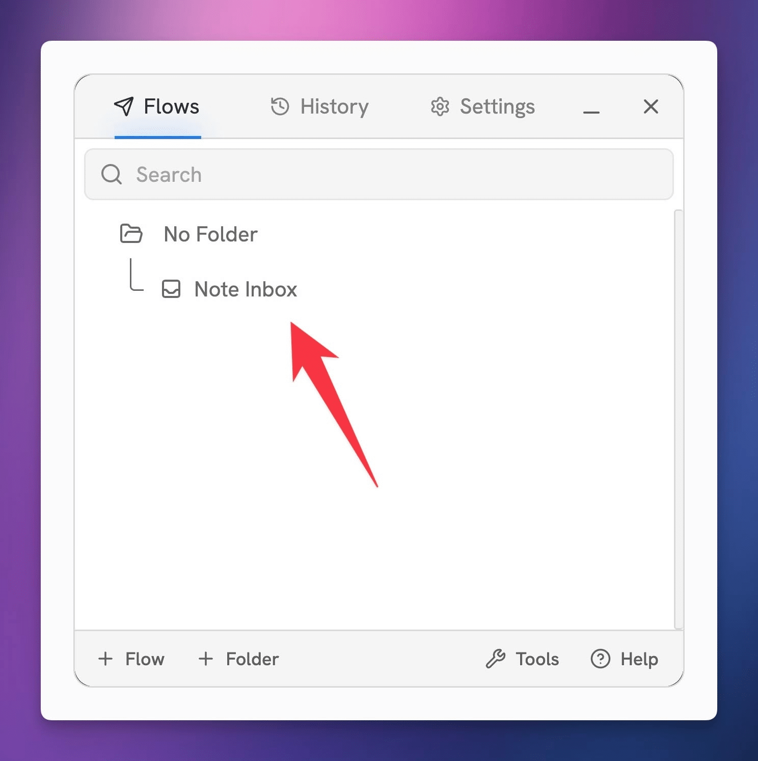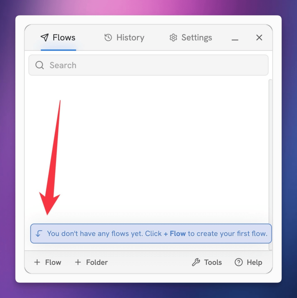 Click + Flow to create your first Flow. You can also hit + Folder if you’d like to create a folder for it first.