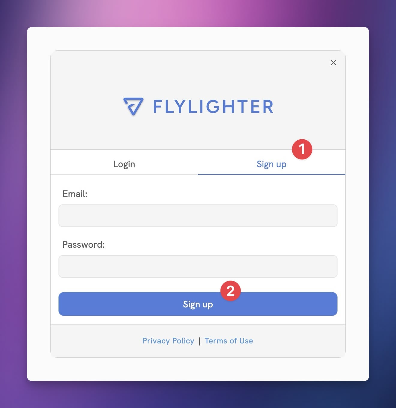When you first open Flylighter, you'll be prompted to log in or sign up.