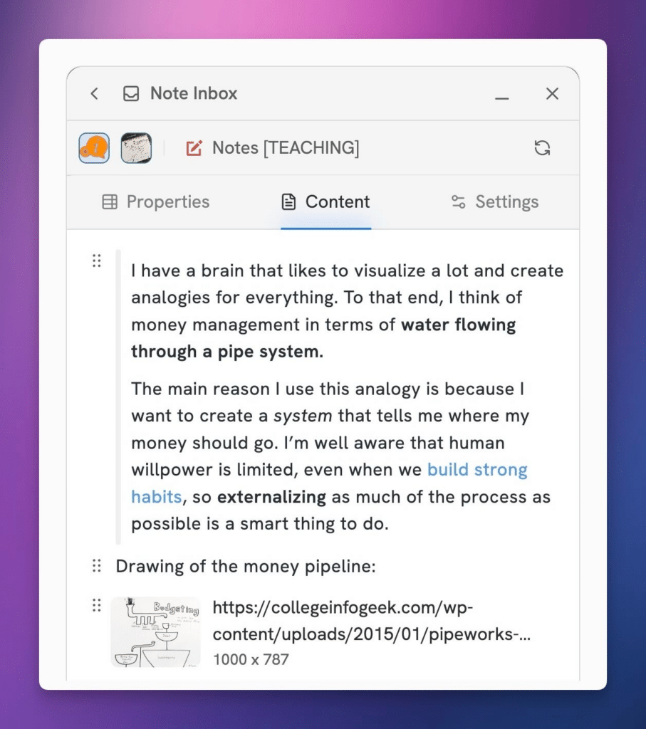 Flylighter’s Content Editor lets you capture nearly anything to the body of a Notion page. It gives you a block editor similar to the one you’ll find in Notion itself.