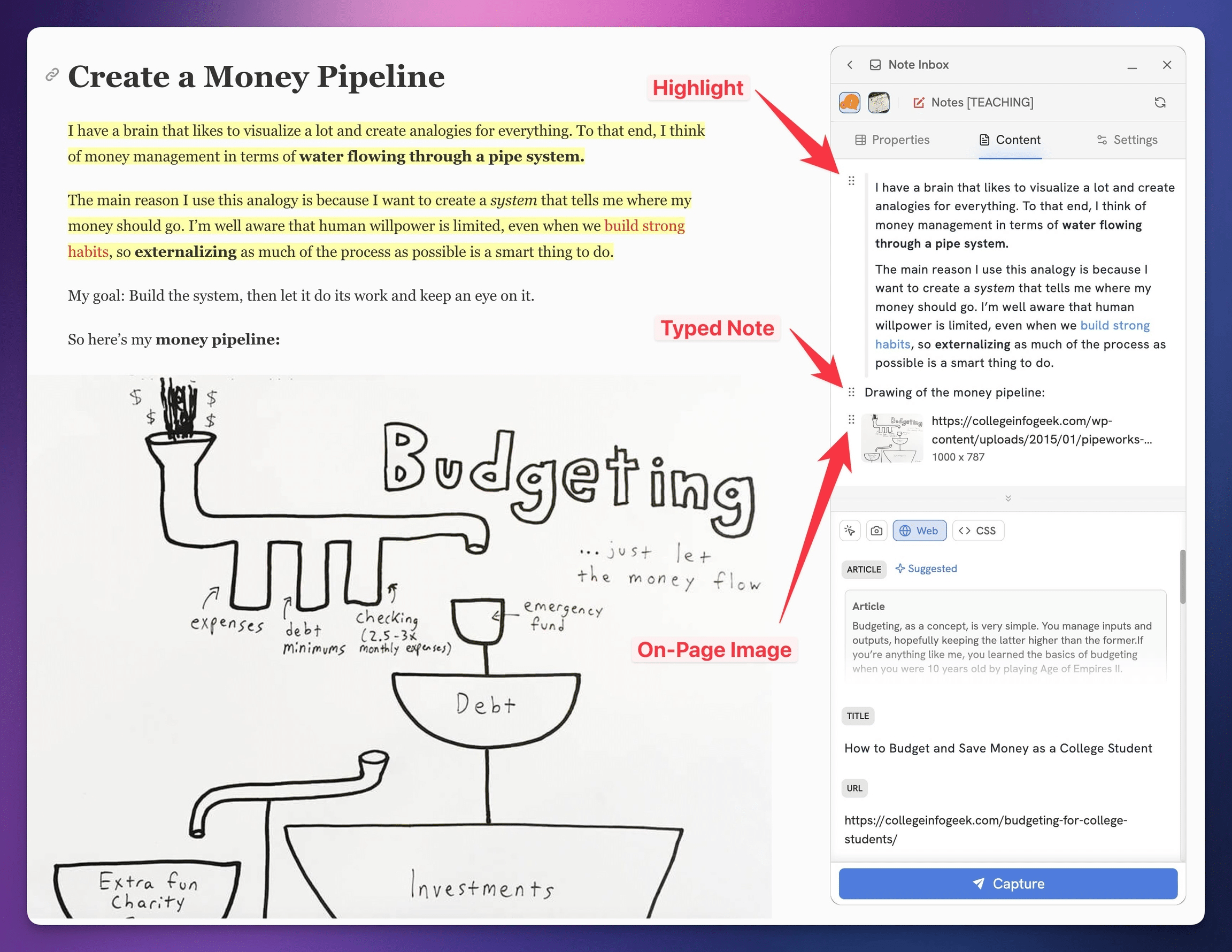 1. Captured a highlight (Select text → Right-Click → Capture Highlight)